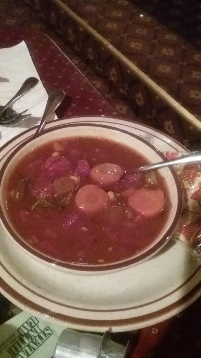 Other menu options include chicken sandwiches, vegetable soup, and baked potatoes, providing guests with familiar choices that pair well with the restaurant’s steakhouse offerings.
